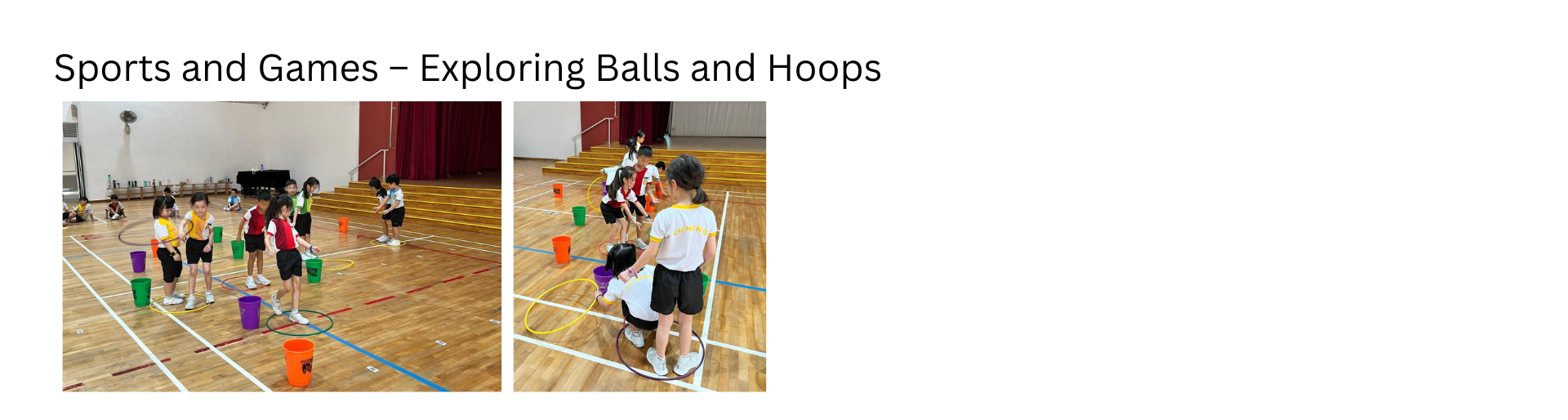 The Sports and Games module focuses on developing gross motor skills, teamwork, and sportsmanship through age-appropriate physical activities. Students learn fundamental movement skills whilst experiencing the joy of active participation and collaborative play.