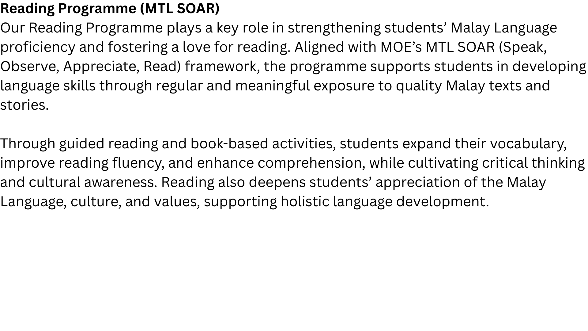 Through these programmes, our Mother Tongue Languages curriculum nurtures future-ready, confident, and culturally grounded learners who are proficient in language and deeply appreciative of their heritage.